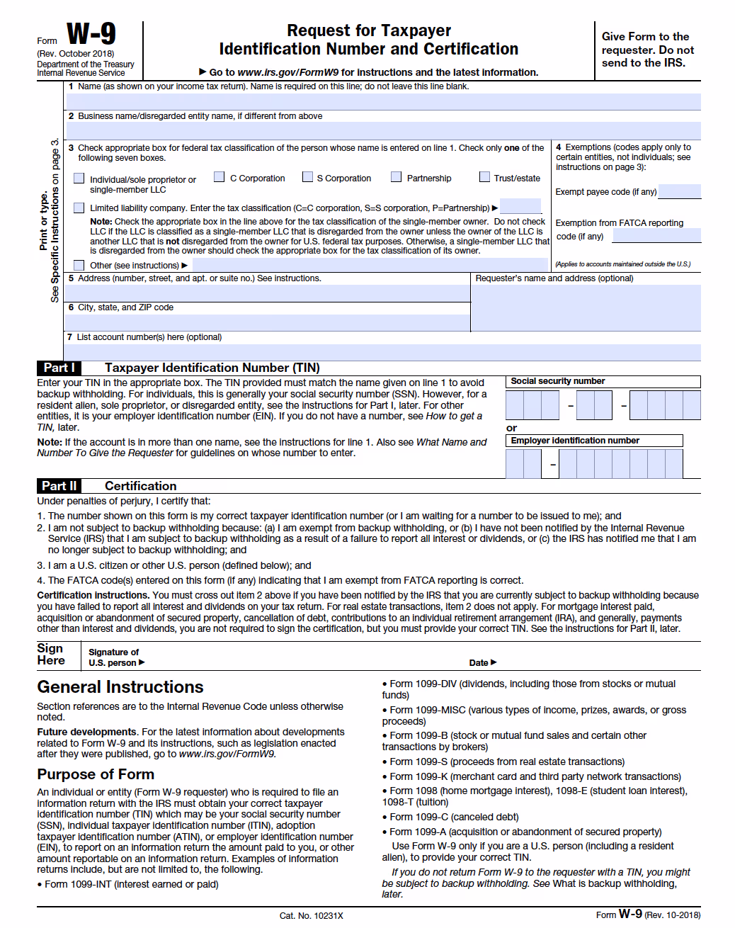 - W-9 Tax ID Number details (Social Security Number or Employer Identification Number)